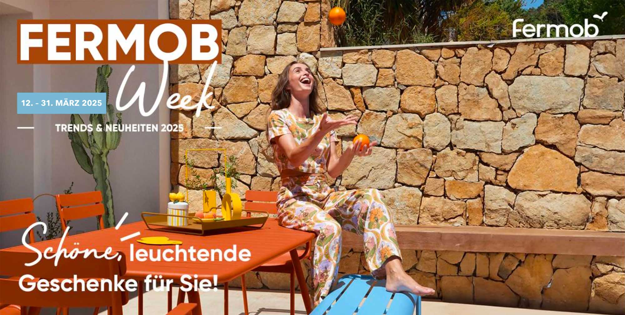 Starten Sie stilvoll in die Outdoor-Saison mit der Fermob Week 2025! Nur bei Mannsdörfer wurde die Aktion verlängert – sichern Sie sich bis zum 31. März 2025 hochwertige Fermob-Geschenke zu Ihrem Einkauf. So funktioniert es: