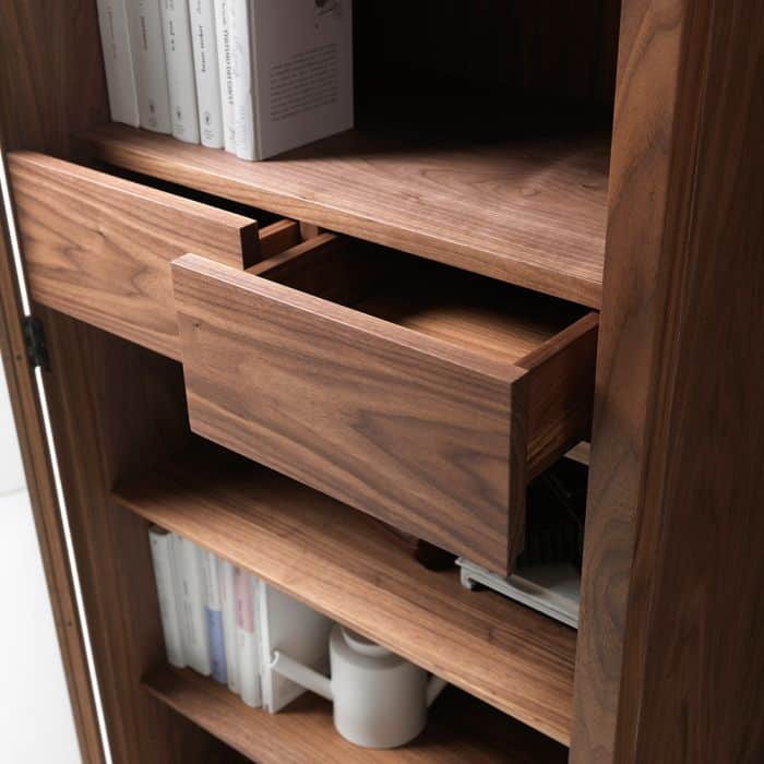 (auf Anfrage gegen Aufpreis auch in Rauchglas bronziert) mit Griffen, inkl. zwei Innenschubladen.